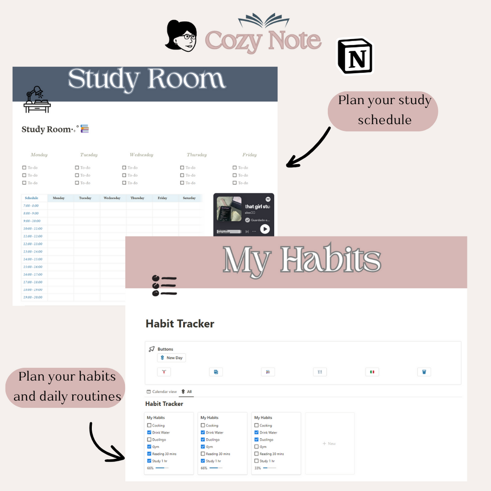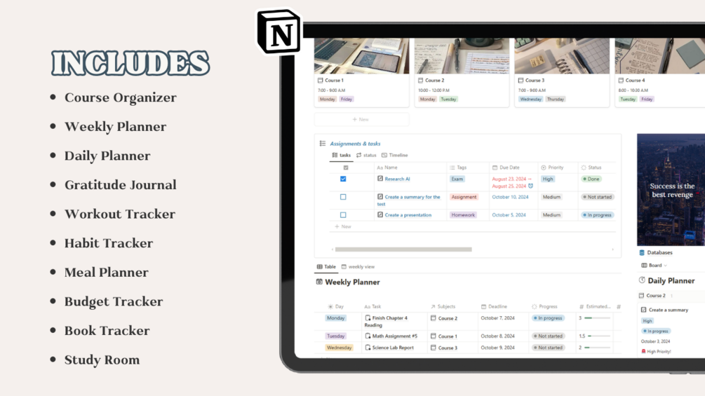 Stop juggling multiple planners and scattered notes! This comprehensive Notion template is your one-stop shop for academic success and a well-balanced life.